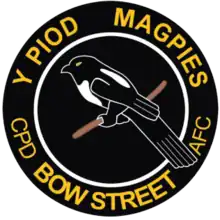 Bow Street F.C. are based at Rhydypennau near Bow Street in Ceredigion, Wales, about 4+1⁄2 miles (7.2 km) north-east of Aberystwyth, and are currently playing in the Ardal Leagues North East. The team are nicknamed the Magpies (Welsh: piod), from the time when their strip was black and white stripes.