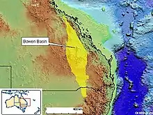 ![]() Map showing the location of Bowen Basin in relation to Australia | |