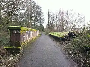 To the east of the station, the former railway line crosses over the North Clyde Line.