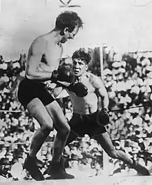 A boxing match in 1914 between Freddie Welsh and Joe Rivers in Vernon, California