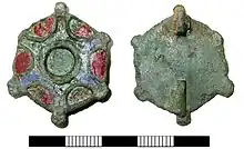 A Roman enamelled brooch, found in Bradfield and dated to c.75 – c.200[4]