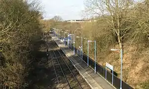 Braintree Freeport railway station is on the Braintree Branch Line in the East of England, serving the Braintree Village shopping centre (formerly known as Braintree Freeport). It is 44 miles 16 chains (71.13 km) down the line from London Liverpool Street via Witham and it is situated between Cressing to the south and Braintree to the north. Its three-letter station code is BTP.[1] The platform has an operational length for eight-coach trains.