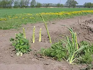 Very famous and almost internationally known is the asparagus grown in the surroundings of Beelitz. Most of the yieldings are sold in the area and especially to Berlin where during the asparagus season many restaurants offer Beelitzer Spargel mit Kartoffeln und Sauce Hollandaise (asparagus with potatoes and hollandaise sauce).