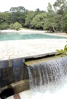 The terrain is an undulating plateau with geological formations of quartzites and limestones. It has many caves and several springs. Apart from the springs, the source of water supply to the park is also through a reservoir.[2] The most prominent features of the park are the pools formed from water wells. Several creeks flow through the park, including the Bananal, Torto, and Santa Maria Creeks. Because of the large number of springs, its nickname is Agua Mineral (mineral water); the water is reported to have healing properties.[4] There are many trekking trails through the park.[5]