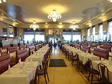 The Brasserie Georges is a restaurant located in the 2nd arrondissement of Lyon. It is the oldest brasserie in the city and one of the largest brasseries in Europe.[1] Its reputation is now international. With a history closely linked to that of Lyon, the brasserie serves typical dishes including the famous sausage of Lyon with pistachios, and recipes from other regions such as sauerkraut, baked Alaska or the seafood on their menu.[2] In 1986 was served the biggest sauerkraut in the world; its weighed a ton and a half. In 1996, the largest baked Alaska (34 metres) was served. The Brassarie Georges brews its own beer, a tradition from its inception, when water in Lyon was considered of exceptional quality. The restaurant never closes throughout the year. Over seven-hundred guests can be served at each service.[3] On 8 December, during the fête des lumières, over 2,500 meals were served in a service. It is sometimes called the BG or Le Georges.