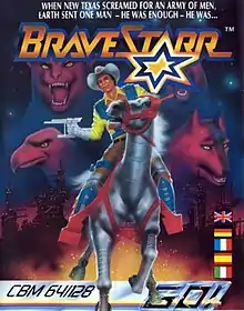 BraveStarr is a 1987 action game developed by Probe Software and published under U.S. Gold's Go! label. Based on the animated series and toyline of the same name, the player assumes the role of Marshal BraveStarr.