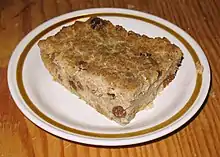 The Old English word for bread was hlaf (hlaifs in Gothic: modern English loaf), which appears to be the oldest Teutonic name.[58] Old High German hleib[59] and modern German Laib derive from this Proto-Germanic word, which was borrowed into some Slavic (Czech: chléb, Polish: bochen chleba, Russian: khleb) and Finnic (Finnish: leipä, Estonian: leib) languages as well. The Middle and Modern English word bread appears in Germanic languages, such as West Frisian: brea, Dutch: brood, German: Brot, Swedish: bröd, and Norwegian and Danish: brød; it may be related to brew or perhaps to break, originally meaning "broken piece", "morsel".[60]