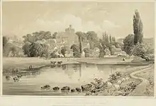Because of the characteristic round shape of its churchyard, the cathedral is thought to be on the site of an earlier Celtic church, of which no trace remains. A new church, dedicated to St. John, was built on the orders of Bernard de Neufmarché, the Norman knight who conquered the kingdom of Brycheiniog in 1093. He gave the church to one of his followers, Roger, a monk from Battle Abbey, who founded a priory on the site as a daughter house of Battle. The first prior at Brecon was Walter, another monk from Battle. Bernard de Neufmarché also endowed the priory with lands, rights and tithes from the surrounding area, and, after his death, it passed to the Earls of Hereford, so giving it greater prosperity. The church was rebuilt and extended in the Gothic style in about 1215, during the reign of King John.[1] In the Middle Ages, the church was known as the church of Holy Rood or Holy Cross, because it owned a great "golden rood" which was an object of pilgrimage and veneration until it was destroyed in the Dissolution of the Monasteries in the 16th century.[2] The smoke-blackened roof of its hall was built between 1237 and 1267.[3]