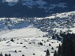 While the area was settled in the late Roman era or Early Middle Ages, Breil/Brigels is first mentioned in 765 as in Bregelo when the Bishop of Chur granted a farm in Breil/Brigels to Disentis Abbey. Shortly thereafter, the Abbey established a church and fortification on St. Eusebius' hill near the village. The village church of S. Maria and the chapel of S. Sievi (Chaplutta Son Sievi) both came under control of the Abbey in 1185 at the order of the Pope.[3] New immigrants, known as the Freie von Laax, moved into the village during the middle ages which weakened the power of the Abbey. In the early 14th Century, the pro-Habsburg Abbot Hugo III of Werdenberg marched into the valley to reestablish his authority, but was forced out in 1327. Following a fire which destroyed much of the Abbey in 1387, the Abbot Johannes of Ilanz sold his alpine pastures in Breil/Brigels to pay for the reconstruction. In 1491, the village of church of S. Maria was raised to a parish church. Then, in 1496 the Abbey church and fort on St. Eusebius' hill both burned to the ground and were not rebuilt. During the plague of 1550 the village had 316 deaths. Six years later the plague struck again, killing 180 and in 1631 a third plague killed 130. In 1738, the village became free of the obligation to provide tithes to the church.[4]