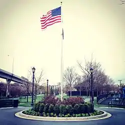 In October 2014, MassPort announced the plans for East Boston's first dog park, giving residents a place to bring their dogs. Dedicated on September 14, 2015, the Bremen Street Dog Park is located at the southeast terminus of Bremen Street Park, underneath the Route 1A overpass near the Sumner Tunnel, where the neighborhoods of Jeffries Point and lower Eagle Hill intersect. The $250,000[15] half-acre dog park is divided into a 17,000-square-foot section for larger dogs and a 5,500-square-foot part for smaller ones, fenced off from each other. Each area has its own dog exercise centers including agility courses, pet waste stations, benches, separate water fountains for dogs and their owners,[16] and benches.[17] Pressley Associates Landscape Architects of Boston designed the park's dog play area with a surface of crushed gravel, replacing the site's original cobblestones. An asphalt track for dog owners to socialize, run around, or watch their dogs at play surrounds the graveled area.[16] The remainder of Bremen Street Park does not allow dogs.[3]