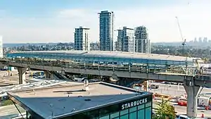 Brentwood Town Centre (sometimes abbreviated as Brentwood) is an elevated station on the Millennium Line of Metro Vancouver's SkyTrain rapid transit system. The station is located above Lougheed Highway east of Willingdon Avenue in Burnaby, British Columbia, Canada. The station is adjacent to the Amazing Brentwood, a mid-size shopping centre.
