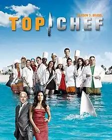 Top Chef: Miami is the third season of the American reality television series Top Chef. It was first filmed in Miami, Florida, before concluding in Aspen, Colorado. The season was Emmy nominated for Outstanding Reality Competition Series, and garnered the Emmy Award for Best Editing in the category.[1] Season 3 premiered on June 13, 2007 and ended on October 10, 2007.[2] Padma Lakshmi returned with Tom Colicchio, Gail Simmons, and new judge Ted Allen, who switched off with Simmons throughout the season.[2] Top Chef: San Francisco contestant Lee Anne Wong was brought in as a food consultant and assisted in planning the challenges.[3] Production took place in April and May 2007 in Miami Beach, Florida, with production activity centered at the Fontainebleau Hotel.[3] The winning recipe from each week's episode of Season 3 was featured on Bravo's Top Chef website and prepared by Lee Anne Wong in a web series called The Wong Way to Cook.[3] In the season finale, Hung Huynh was declared the winner over runners-up Dale Levitski and Casey Thompson.[4] Thompson was voted Fan Favorite.[5]