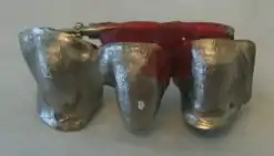 The proximal surfaces of the sectioned units (that is, the adjacent surfaces of the metal at the cut) are roughened and the relationship is preserved with a material that will hold on to both sides, such as PATTERN RESIN™ from the company GC America.[33] With the two bridge abutments individually seated on their prepared abutment teeth, the resin is applied to the location of the sectioning to reestablish a proper spatial relationship between the two pieces. This can then be sent to the lab where the two pieces will be soldered and returned for another try-in or final cementation.