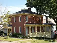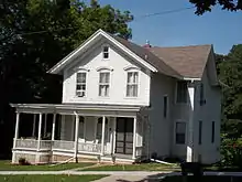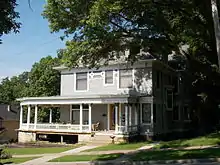 The most prominent of the residences was built by Ambrose Fulton, who was significant to Davenport's early settlement and its industrial history.[4] He was an early and aggressive promoter of the new town. Fulton was involved in multiple industries including flour mills, railroads, river commerce, land speculation, and retail commerce.[2] Of the four oldest houses in the district, three are Italianate, including the Fulton House, and one is Second Empire. Three of the four houses feature quoined corners similar to that of the Fulton residence even though they are built of wood. Quoining is rare in Davenport's residential architecture and its noticeable incidence here suggest others were emulating Fulton.[5] Besides Fulton, three other prominent members of the Davenport community built houses on Bridge Avenue. John B. Carmichael dealt in books, stationary, and wallpaper; Josiah Dow owned a grain mill; and John Forrest was a local politician and commercial developer.[5] Forrest is also responsible for the Forrest Block downtown.[2] Josiah's wife Maggie built a duplex on Bridge Avenue after her husband's death.