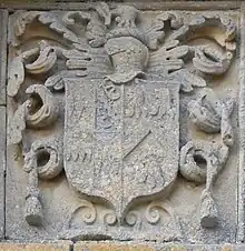 - Mary Giffard (died 1598), wife of John Wykes (c. 1520 – 1591), of North Wyke in the parish of South Tawton, Devon, whose effigy exists in the Wyke Chapel in St Andrew's Church, South Tawton.[17][18] He is known locally as "Warrior Wykes", and commanded a horse regiment as indicated by the spurs on his effigy. He fought at Havre de Grace and was wounded. He built much of the surviving mansion house of North Wyke, including its chapel, on the corbel of the upper eastern window of which are sculpted the arms of Wykes (three Danish battle-axes) and Giffard.[19]