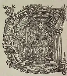 The casting of Elizabeth I as a "British Constantine" (rather than English) depended on foreign policy towards Scotland, and therefore was problematic.[11] John Foxe in dedicating his Actes and Monuments to Elizabeth compared her to Constantine, and a woodcut from the 1563 edition portrayed her as a "second Constantine".[12][13]