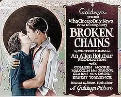 Broken Chains is a 1922 American silent melodrama film directed by Allen Holubar. Starring Colleen Moore, Malcolm McGregor, and Ernest Torrence, it was based on the winning story from a scenario contest held by the Goldwyn Pictures Corporation and the Chicago Daily News. A print of Broken Chains is preserved at the George Eastman House archive.[1]
