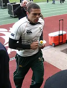 Bryan Gary Habana OIS (born 12 June 1983)[2] is a South African former professional rugby union player who initially played as an outside centre but later shifted to the wing. He is widely considered to be one of the greatest players in the history of the sport. He most recently played for Toulon in the French Top 14 competition, and for the South Africa national team (the Springboks).