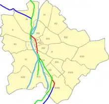 | Blue | Line M3 (Újpest-Központ ↔ Kőbánya-Kispest)[20] |