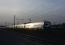 The Budd Metroliner was a class of American electric multiple unit (EMU) railcar designed for first-class, high-speed service between New York City and Washington, D.C., on the Northeast Corridor. They were designed for operation up to 150 miles per hour (240 km/h): what would have been the first high speed rail service in the Western Hemisphere. Although 164 mph (264 km/h) was reached during test runs, track conditions and electrical issues limited top speeds to 120 mph (190 km/h) in revenue service. The single-ended units were designed to be arranged in two-car sets, which were in turn coupled into four to eight-car trains.