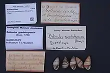 Bulimulus guadalupensis is a species of tropical air-breathing land snail, a pulmonate gastropod mollusk in the subfamily Bulimulinae.
