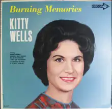 Burning Memories is an album recorded by Kitty Wells and released in 1965 on the Decca label (DL 4612).[1] The album included the hit single "I'll Repossess My Heart". Thom Owens of Allmusic opined that it "is too uneven in terms of material and is burdened by too many overdubbed vocal chorus and strings to be consistently enjoyable".[2]