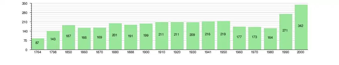 As of 2000, there were 138 private households in the municipality, and an average of 2.5 persons per household.[9] There were 42 households that consist of only one person and 12 households with five or more people. Out of a total of 139 households that answered this question, 30.2% were households made up of just one person and there was 1 adult who lived with their parents. Of the rest of the households, there are 39 married couples without children, 49 married couples with children There were 5 single parents with a child or children. There were 2 households that were made up of unrelated people and 1 household that was made up of some sort of institution or another collective housing.[10]