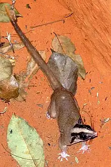 The bushy-tailed opossum (Glironia venusta) is an opossum from South America. It was first described by English zoologist Oldfield Thomas in 1912. It is a medium-sized opossum characterized by a large, oval, dark ears, fawn to cinnamon coat with a buff to gray underside, grayish limbs, and a furry tail. Little is known of the behavior of the bushy-tailed opossum; less than 25 specimens are known. It appears to be arboreal (tree-living), nocturnal (active mainly at night) and solitary. The diet probably comprises insects, eggs and plant material. This opossum has been captured from heavy, humid, tropical forests; it has been reported from Bolivia, Brazil, Colombia, Ecuador and Peru. The IUCN classifies it as least concern.