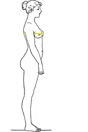 A bustline is an arbitrary line encircling the fullest part of the bust or body circumference at the bust.[1] It is a body measurement which measures the circumference of a woman's torso at the level of the breasts. It is measured by keeping a measuring tape horizontal and wrapping it around the body so that it goes over the nipples and under the arms.