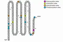 - Six ubiquitination sites at 16, 39, 69, 104, 137.