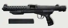 ![]() CETME C2 sub-machinegun with its stock folded & a 30 round magazine | |