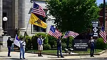 The reopen protests have generally been small, with protester numbers ranging from a few dozen to the low hundreds; the first protest in Michigan drew twenty thousand protestors, as estimated by the state police.[21] Protesters included mainstream Republicans,[22] but also far-right groups including Proud Boys and armed militia movement supporters.[4] A large number of "anti-vax" advocates have attended, and some have been the organizers of local protests.[23][24] Ben, Chris and Aaron Dorr, three guns-rights activist brothers, are the organizers of protests in several midwestern states.[25][26]