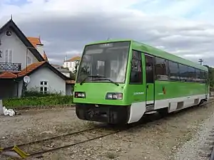 With the closure of most of the Tua line in 2008 and the entirety of the Corgo and Tâmega lines in 2009, as of 2012 only two of the nine railcars built remain in use, although they are currently out of service for maintenance after the closure of the Metro de Mirandela.[1] Given that funding for the Metro de Mirandela project had been given by the European Union the railcars were named Lisboa, Paris, Estrasburgo (Strasbourg) and Bruxelas (Brussels). The railcar Bruxelas was subsequently destroyed in an accident in January 2007. The other five railcars have been sold to Inca Rail in Peru and regauged to 914 mm (former 3 ft gauge).