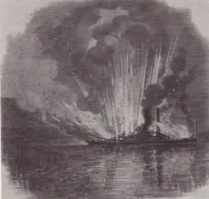 ![]() Burning of the Confederate gunboat Curlew, off Fort Forrest, Feb. 7, 1862 | |