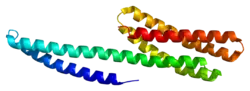 αE-catenin, also known as Catenin alpha-1 is a protein that in humans is encoded by the CTNNA1 gene.[5][6] αE-catenin is highly expressed in cardiac muscle and localizes to adherens junctions at intercalated disc structures where it functions to mediate the anchorage of actin filaments to the sarcolemma. αE-catenin also plays a role in tumor metastasis and skin cell function.