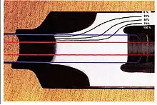 The crux of this device, invented by NKF in Delft in 1964,[12] is that the bore of the elastic body is narrower than the diameter of the cable. In this way the (blue) interface between cable and stress-cone is brought under mechanical pressure so that no cavities or air pockets can be formed between cable and cone. Electric breakdown in this region is prevented in this way.