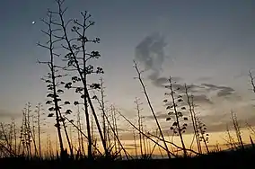 One of the most familiar plant species in the natural park is Agave (Pita) Americana, a native of tropical America and Mexico. Common names include century plant, maguey (in Mexico), or American aloe (it is not, however, closely related to the genus Aloe). The name "century plant" refers to the long time the plant takes to flower. The number of years before flowering occurs depends on the vigour of the individual plant, the richness of the soil, and the climate; during these years the plant is storing in its fleshy leaves the nutrients required for the effort of flowering.
