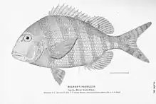 The sheepshead porgy (Calamus penna) is a species of fish of the porgy family, Sparidae, only found in the Atlantic Ocean. It is only distantly related to the California sheephead of the Pacific Ocean.