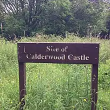Anecdotally in the work 'History of Rutherglen & East Kilbride, 1793, he describes an old story handed down by country folk bearing the name of Calderwood at that time in the Shire of Ayr.'In this work a tradition is given as to the estate of Calderwood having been possessed by a family of that surname from time immemorial. This family at last, consisted of 3 sons and a daughter. The sons having unhappily quarreled with the priest of the parish and finding it not safe to remain any longer in Calderwood, fled to the Earl of Cassilis for protection who gave them the farms of Peacockbank and Moss-side in the parish of Stewarton, and 40 acre lands in Kyle. The sister who was left in Kilbride, was married to a Maxwell, and got by the marriage, the whole of her fathers estate.'[2][3] Since this anecdote does not appear to rely on any existing primary evidence, and as primary evidence itself negates the story by proving the estate of Calderwood came to the Maxwells via a marriage to the McGauckhin Family of Mearns Barony, it would appear it bears little truth. These take the form of early references in the British Library to such a marriage, although no document mentioning Calderwood and Mearns Barony are known.[4] Surnames were assumed from places as well as professions, and within a strict historical context all that can be concluded at this time is that people descending 'of' Calderwood, either retainers or bonnet lairds within the lairdship, and perhaps many unrelated persons, adopted this surname at an early period. Sir Aymer de Maxwell (1200-1264), the Great Chamberlain of Scotland who gained several Sheriffdoms, was the father of Sir John Maxwell of Pollok, also known as Sir John Maxwell 'of Calderwood' (b. 1243) according to Fraser, but this appear to be purely the assumption of Fraser because no documents exist nor are cited by Fraser which styles the figure of Calderwood.[5] The first known Maxwell castle in Calderwood was built after the year 1400 when the new cadet branch from Pollok was in need of protection as a family seat of the newly created 'Maxwells of Calderwood.[6] This building may have occupied the site of an earlier defensive structure, as Calderwood is mentioned in the 1296 Ragman's Roll[7] and the promontory is the only natural place in the gorge which lends itself to defence, although its visual prospect is greatly limited. Actually another site nearby has been identified as an early fortified site attached to a hillfort, but this is likelier the seat of the Calderwood family and not the Maxwells. The building known as Calderwood Castle (latterly Calderwood House) went through a series of changes over the centuries, with the most recent Gothic revival edifice being executed in the 1840s. The manor was sold circa 1904 to the Scottish Co-operative Wholesale Society, then a wing of the UK Government, private ownership, and finally the East Kilbride Development Corporation, who demolished the last traces of the Victorian building in 1951.[6][8]