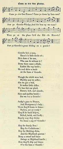 Cam Ye o'er frae France? is a Scots folk song from the time of the Jacobite rebellions of the 18th century. It satirises the marital problems of the Hanoverian George I.[1]
