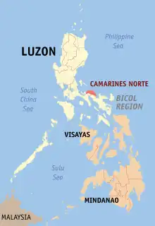 ![]() Map of Camarines Norte showing the location of its 1st district | |