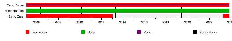Composer, singer, and producer born in Torreon, Coahuila, Mario Domm commands multiple musical instruments, such as: drums, piano, guitar, and bass.
