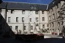 Mother Thérèse Camille continued to restore and refurbish the convent church, going as far as to claim or buy back looted paintings and sculptures and to put them back in their place. On several occasions the government tried to take back possession of the church. Mother Thérèse Camille firmly, calmly and successfully opposed them.[37] Having at first bought only a part of the buildings, she took advantage of an opportunity on 8 November 1801 to buy another part of the original Carmelite convent. She completed her acquisitions on 22 August 1807 by buying the third part of the buildings, thus obtaining a property far too large for the nuns' needs. In 1819 she finished restoration of the portal of the church. Finally, on 23 July 1841, she gave the buildings unconditionally to Denis Auguste Affre, Archbishop of Paris.[38] He would use them for a new School of high ecclesiastical studies, today the Institut Catholique de Paris. The Carmelites did not leave the convent until 23 April 1845 to settle in the Avenue de Saxe in Paris, where Mother Thérèse Camille had built a new convent.[23][33]