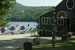 The campus also includes a dining hall (for seating up to 400), a performing arts building with an indoor and outdoor stage and a gymnasium, and a new Lodge in 2022. Camp Wekeela has abundant recreational facilities and scenic nature preserves spanning sixty plus acres right next to Little Bear Pond. Some of these recreational facilities include horseback riding, tennis courts, baseball diamonds, soccer fields, basketball courts, hockey rink, lacrosse fields, beach volleyball court, climbing tower, natural rock climbing wall, zip-line, high and low ropes course, environmental sciences building, culinary arts building, gymnastics pavilion, photography studio, dance center, weight room, radio building, creative arts center, and a large waterfront for swimming, water-skiing, sailing, windsurfing, kayaking, fishing, and scuba diving.[10]