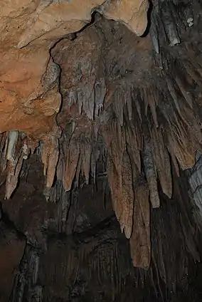 The park has parking, accommodation for volunteers and researchers, garbage bins, a kiosk, benches and picnic tables, toilets and showers. The visitor center has media projection equipment, a lecture room, restrooms and administration areas.[13] The visitor center provides environmental education. The main attraction is the Gruta dos Jesuítas (Jesuit's Cave) with a length of about 500 metres (1,600 ft) of large halls that contain many beautiful speleothems such as stalagmites, stalactites, columns, curtains and travertines.[11] The Gruta da Fada is open only to pre-authorized groups for environmental education or research.[12] There is a 900 metres (3,000 ft) Forest Trail where visitors can learn about the native plant species.[11]