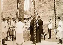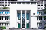 The college's administration had laid out a plan for its physical development in 1913, with the eastern side dedicated to academic and administration buildings, and the western side used for agricultural research.[1] The first permanent structure, the Administration Building, was constructed from 1915 to 1921, and became the university's main building. It was followed by the Science Building in 1929 and Chakrabongse Building (hosting the student clubs) in 1933. These early structures, along with the Auditorium (1939), incorporated Thai-style elements with modern construction methods, in contrast to the increasing adoption of modernist architecture following the abolition of absolute monarchy in 1932, influences of which are seen in the Engineering and Physics buildings (1935), Matthayom Horwang School (1936), Chemistry Building (1940), and the Architecture, Dentistry and Pharmaceutical buildings (1941). The majority of these early buildings saw design contributions by Phra Sarotrattananimman, one of the first formally trained Thai architects.[2]