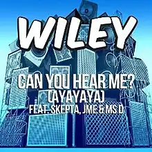 "Can You Hear Me? (Ayayaya)" is a single from British grime artist Wiley, featuring vocals from Skepta, Jme and Ms D. It was released as the second single from his ninth album, The Ascent, on 28 October 2012 for digital download in the United Kingdom. It was written by Richard Cowie, Joseph Adenuga, Jamie Adenuga, Dayo Olatunji and produced by Rymez and Sillkey.