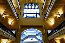 The interior is also embellished with carved wood and bronze balustrades, mosaic floors, marble and plaster detailing and decorative works, and stained glass windows.[14] The interior spaces are centred around a formal hall from which all the museum's other spaces are accessible.[14]