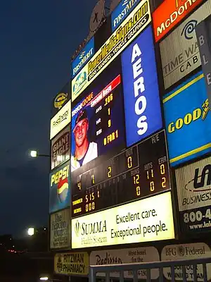 In August 2006, the park completed the installation of a new 18'x25' digital scoreboard to replace the original board with light bulbs. The new board has full color animation capacity and features a four color matrix display. The $386,000 project was originally expected to be completed in early July.[8] The entire scoreboard measures 56¼'x68' and is the largest free-standing scoreboard in minor league baseball.