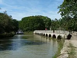The Canal du Midi (French pronunciation: [kanal dy midi]; Occitan: Canal del Miègjorn [ka'nal del mjɛdˈd͡ʒuɾ]) is a 240 km (150 mi) long canal in Southern France (French: le Midi). Originally named the Canal Royal en Languedoc (Royal Canal in Languedoc) and renamed by French revolutionaries to Canal du Midi in 1789, the canal is considered one of the greatest construction works of the 17th century.[2]